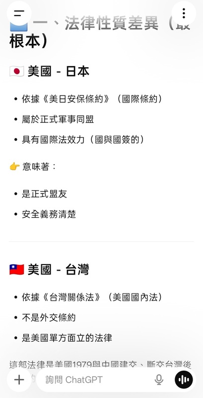 美國對台灣與日本協防條約有何差異呢