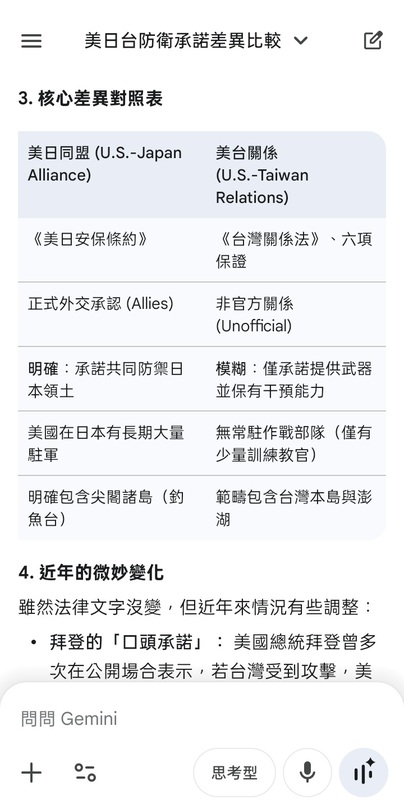美國對台灣與日本協防條約有何差異呢