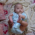 五個月大的QQ宗益越來越頑皮了!今天他居然連自己的腳丫都舉起來玩~