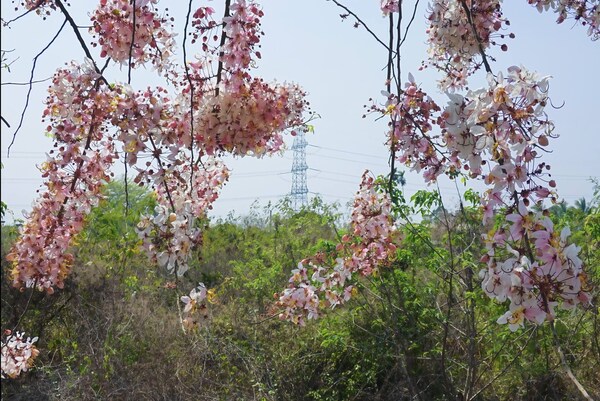彰化「二水花旗木步道」的花旗木開了。