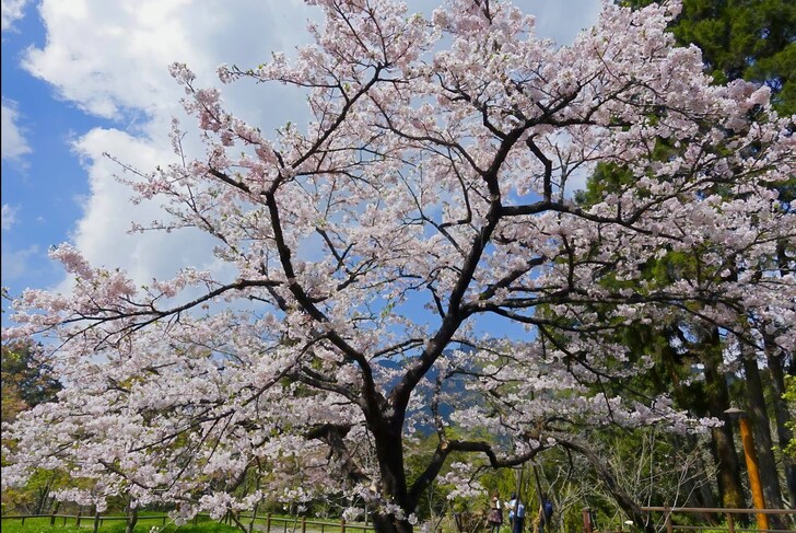 阿里山工作站前櫻王燦爛花開。