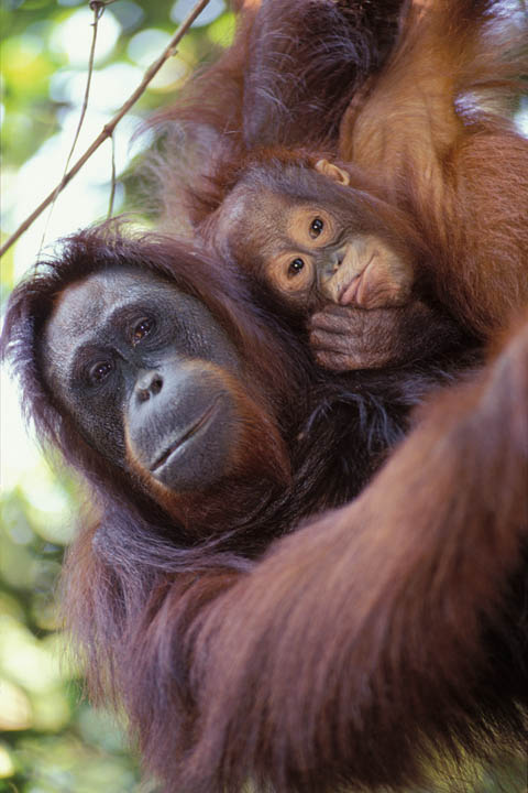 紅毛猩猩媽媽與小孩