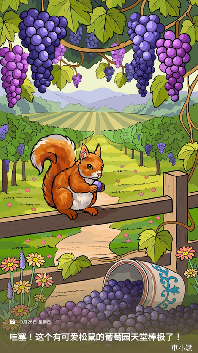 數字填色(Paint by Number),2025.10.26,哇塞!這個有可愛松鼠的葡萄園天堂棒極了!