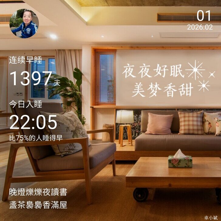 晚安打卡圖,2026.02.01,晚燈爍爍業讀書,盞茶裊裊香滿屋