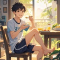 赤腳男孩早安打卡圖,2025.10.26,早安,記得要吃早餐呦