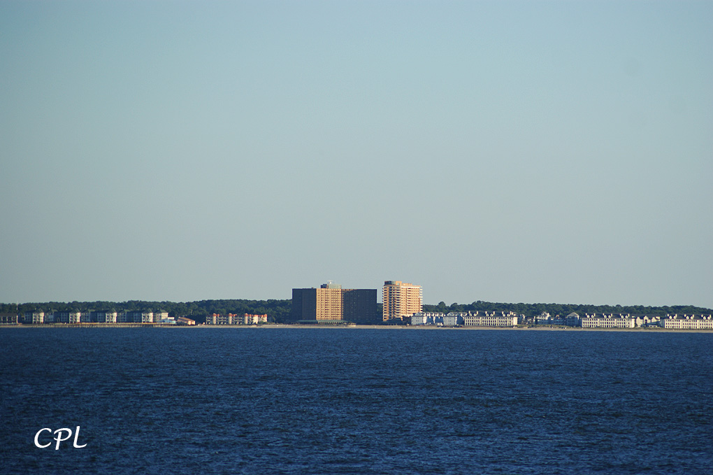 從橋上遠眺維吉尼亞海灘市,沿海都是度假飯店跟海灘