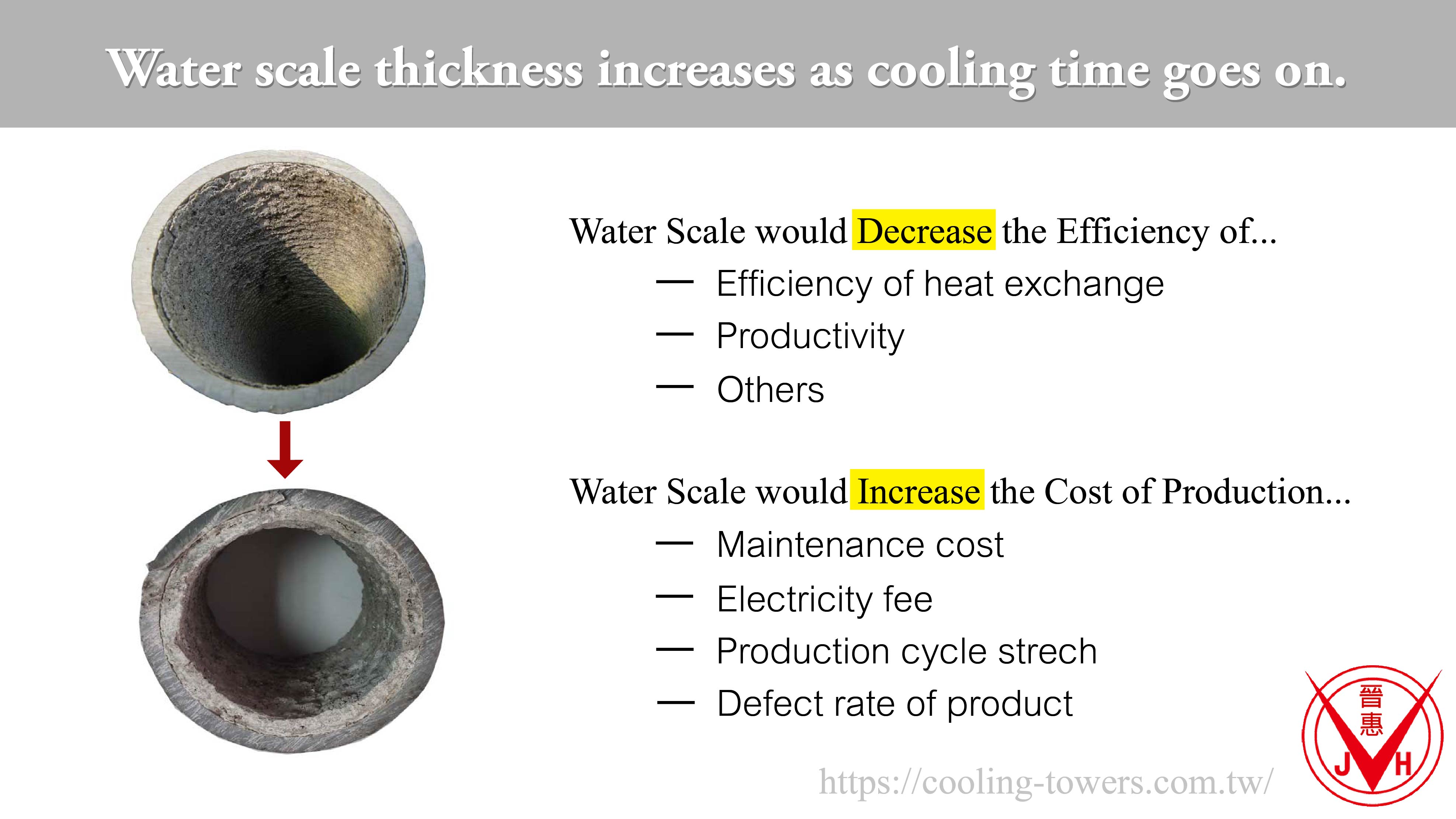 冷卻的過程中水垢的生成是不可免的,那水垢的生成又會對熱交換過程造成什麼樣的影響呢? 更詳細內容請上晉惠冷卻 http://bit.ly/2LjiFFV