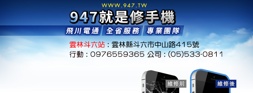 【飛川電通-雲林斗六947手機維修聯盟】雲林縣/斗六/斗南/虎尾/古坑 手機維修蘋果IPHONE,三星SAMSUNG,宏達HTC,索尼SONY,IPAD維修 行動:0976-559365 雲林縣斗六市中山路415號 店長:阿彥