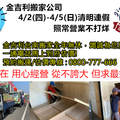 金吉利台南搬家 4/2-5(四-日)清明連續假期照常營業 瀏覽32 推薦0