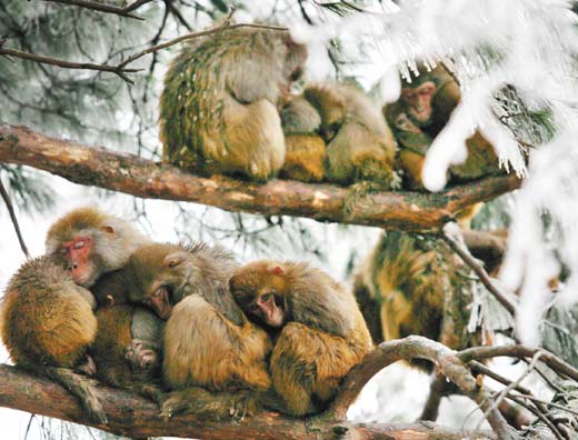 獼猴依偎取暖2008.01.30貴陽市天氣凝凍
