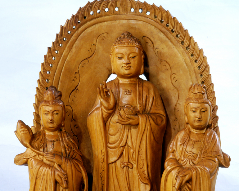 水檀木雕-「西方三聖」