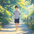 赤腳男孩早安打卡圖,2025.10.27,早安,早起散步健康好心情