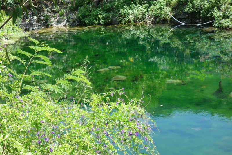 這一泓清潭.是葉美青.傅元陽夫婦跟十位夥伴胼手胝足開墾出來的.水深三米.游魚穿梭.是復育蝴蝶的基地.