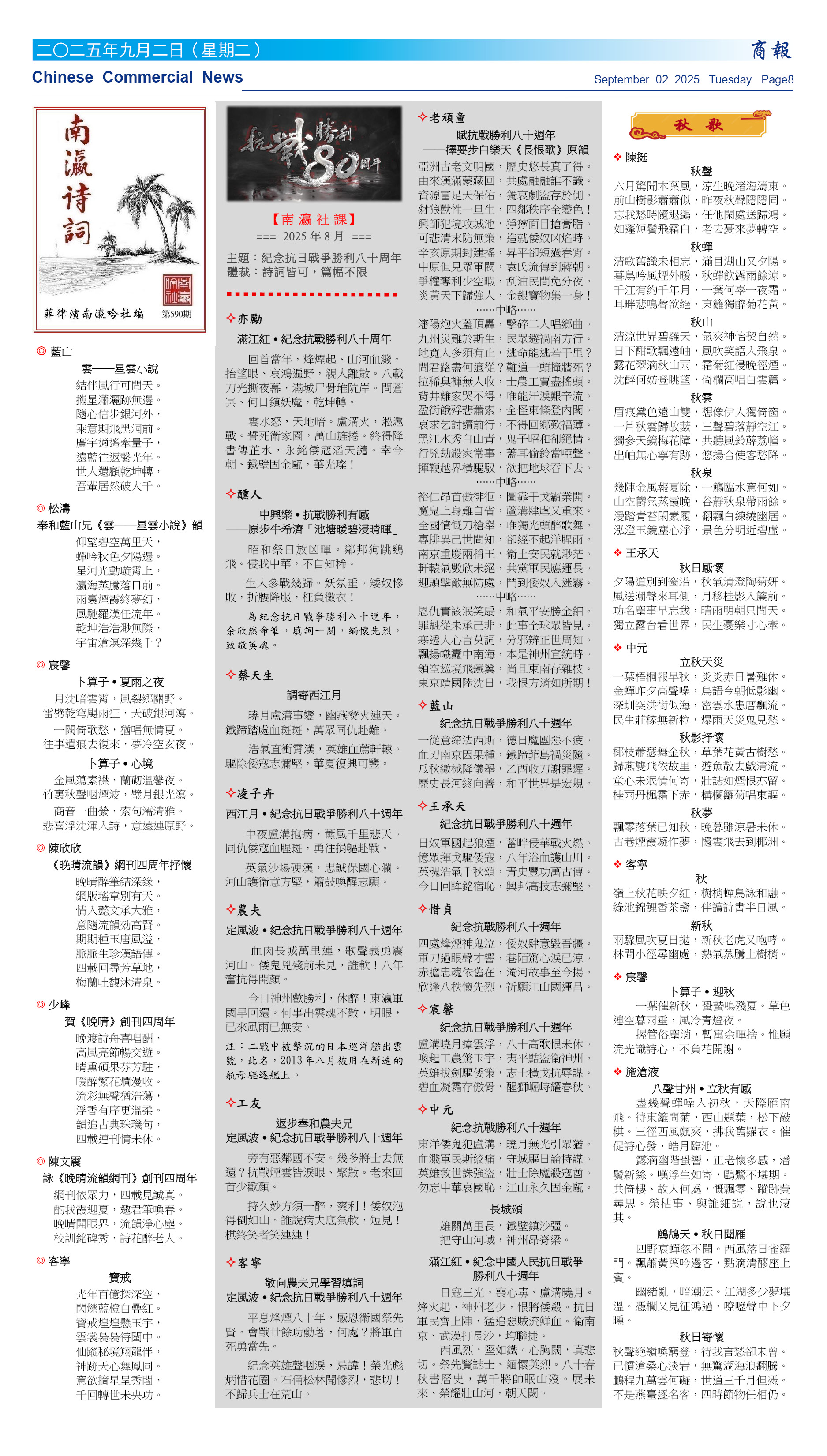 菲律濱商報《南灜詩詞》